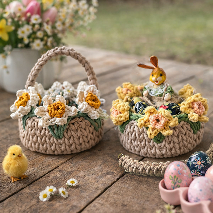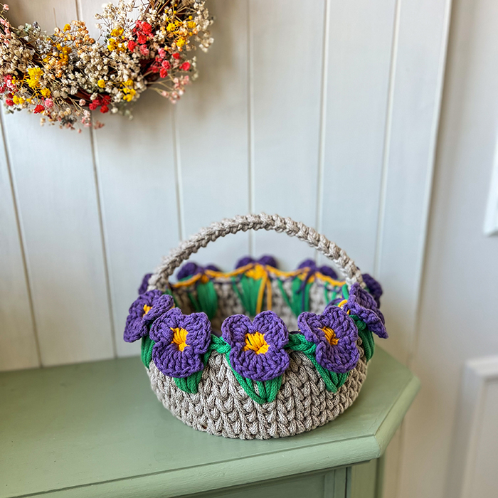 Ten wzór pozwoli Ci wykonać dekoracyjny koszyk wielkanocny 2w1 z uroczymi bratkami w dwóch wersjach. Idealny na świąteczny stół, na święconkę lub jako wiosenną ozdobę domu. Projekt łączy prostą formę koszyka z kwiatowym akcentem, który dodaje całości świeżości i wiosennego charakteru.