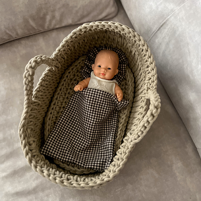 Kosz Mojżesza dla lalki – lniany jasny